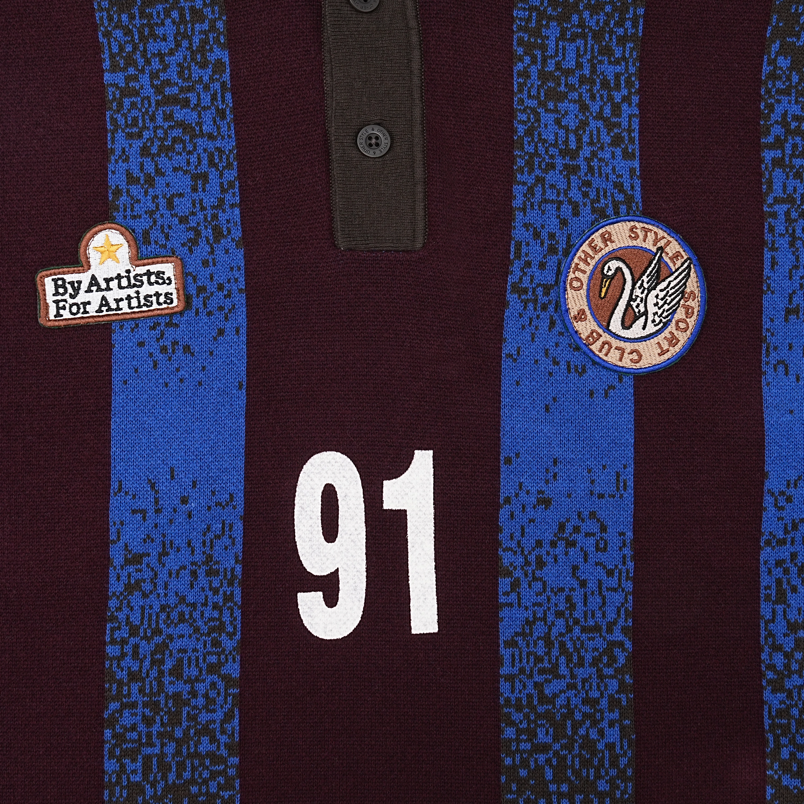 Embroidered patches: “By Artists, For Artists” and winged emblem